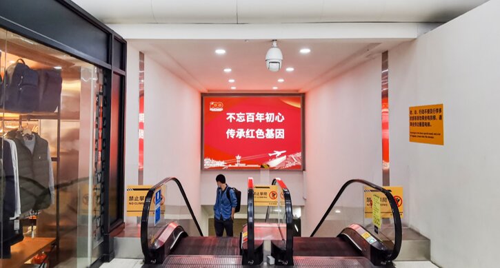?媒體位置:一層國內(nèi)到達(dá)行李廳下扶梯正對LED