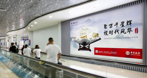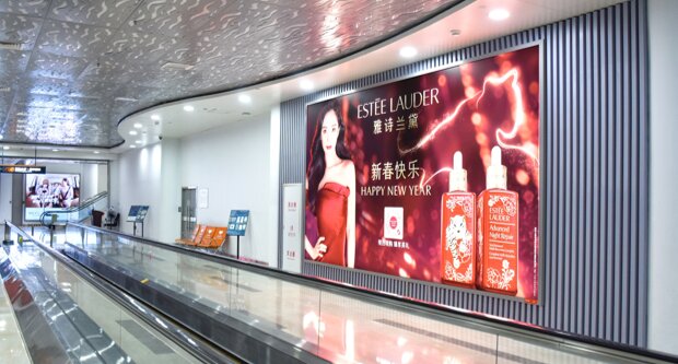 ?媒體位置:T1二層出發(fā)辦票廳通往到達(dá)廳梯眉燈箱