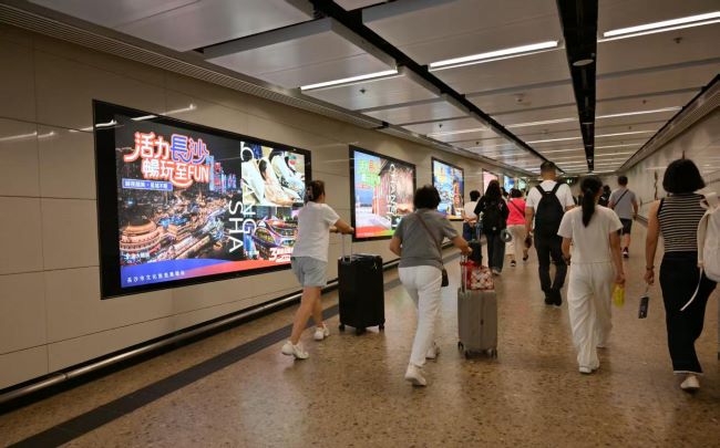 香港西九龍高鐵站通道墻面燈箱廣告位于海關(guān)查驗區(qū)與交通接駁區(qū)過渡帶,所有旅客必須減速通過;8塊燈箱沿通道線性布局,形成總長近24米的品牌展示墻。旅客行進(jìn)中可持續(xù)接觸多塊畫面,實現(xiàn)重復(fù)曝光強(qiáng)化。燈箱安裝高度1.3-1.5米,閱讀距離僅0.8-2米,視覺沖擊力遠(yuǎn)超高空媒體。靜態(tài)畫面持久展示,不受輪播時間限制,確保每位旅客接收完整信息。