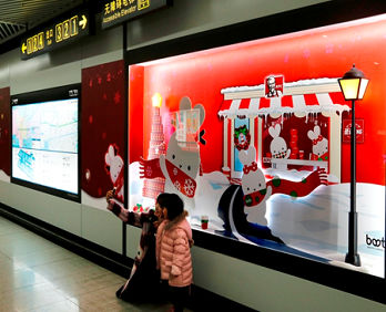 位置及形式:1塊170寸LED+4塊65寸包柱電子屏+5塊12封燈箱+墻貼+4根包柱+4組閘機(jī)貼 媒體報(bào)價(jià):58萬元/站/4周 制作費(fèi):5萬元 |
