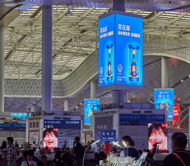 媒體位置:南北出站通道三棱柱LED屏