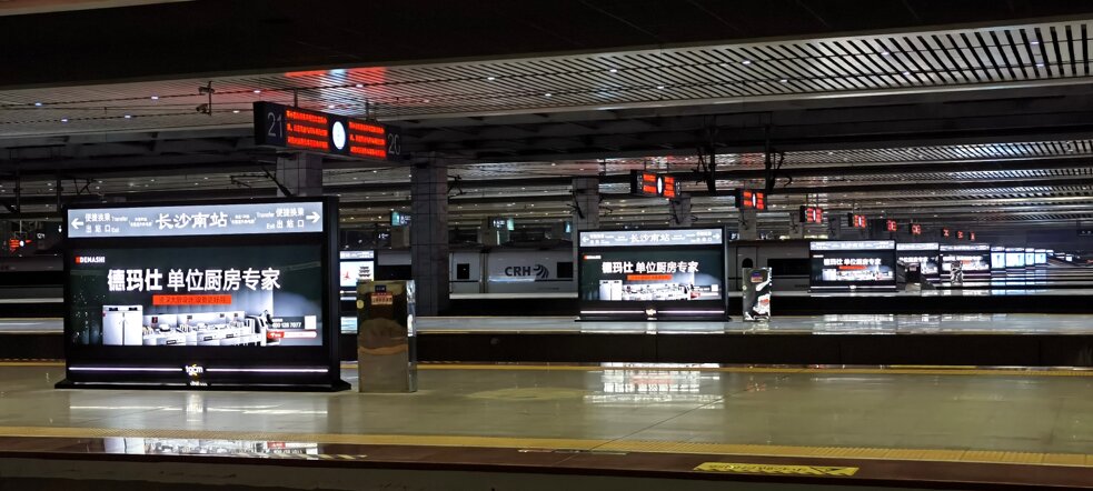 媒體位置:京廣鐵路長沙南站站臺(tái)矩陣燈箱