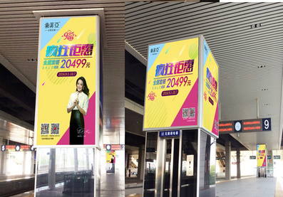 長春西高鐵站廣告案例圖-魔方柱 |