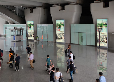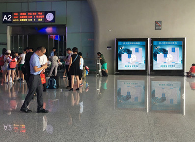 媒體位置/形式:出發(fā)層售票大廳落地燈箱 媒體編號:ZJN-SP-01 媒體數(shù)量:1塊/組,共1塊 媒體尺寸:1.9m*2.04m*1面 媒體報價:5萬元/月/組 |