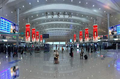 烏魯木齊出發(fā)層候車大廳雙面吊桿燈箱廣告