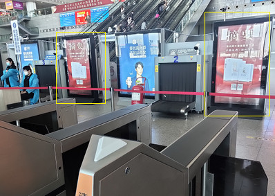 媒體位置/形式:南北安檢口滾動燈箱 媒體規(guī)格:高1.8m*寬1.0m 起售數(shù)量:20幅 每座媒體畫面數(shù)量:6幅 媒體數(shù)量:20臺 刊播秒數(shù):25秒 媒體報價:50萬/組/月,500萬/組/年 |
