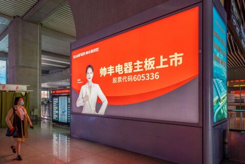 媒體位置/形式:出發(fā)層候車大廳巨型墻面燈箱 媒體編號:GD53、GD54 媒體數(shù)量:1塊/組,共2塊 媒體尺寸:23m*4.5m*1面 媒體報價:50萬元/月/組