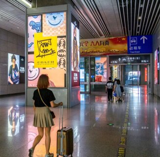 媒體位置:到達(dá)層出站通道包柱燈箱