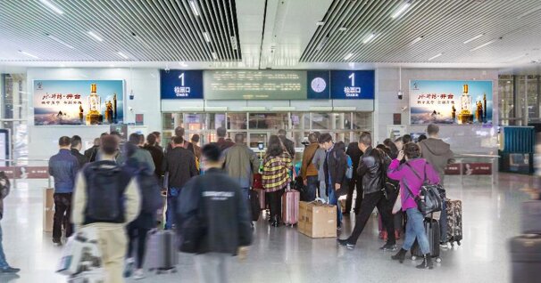 媒體位置:二層候車大廳檢票口上方LED屏