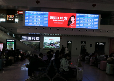 媒體位置:候車大廳LED屏 媒體編號(hào):JH-L-(01-02) 媒體數(shù)量:2塊 廣告尺寸:4.03m*2.59m 媒體聯(lián)播報(bào)價(jià):10萬(wàn)元/月/5秒,18萬(wàn)元/月/10秒,25萬(wàn)元/月/15秒