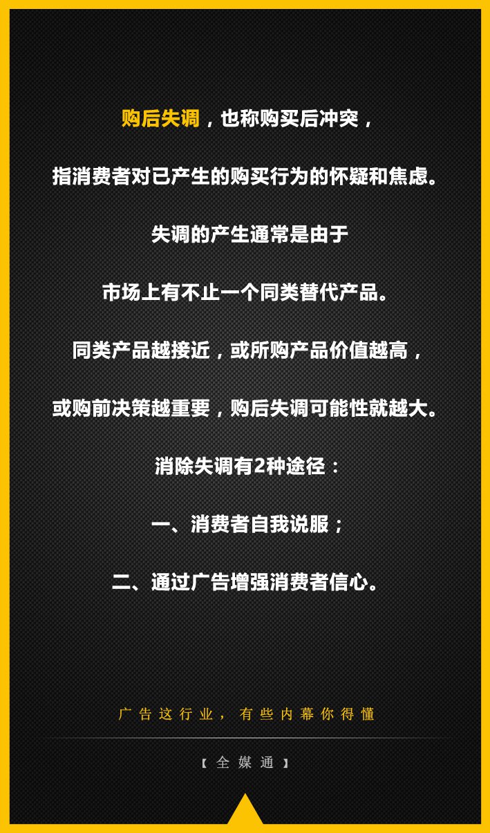 購后失調(diào),也稱購買后沖突,指消費者對已產(chǎn)生的購買行為的懷疑和焦慮。