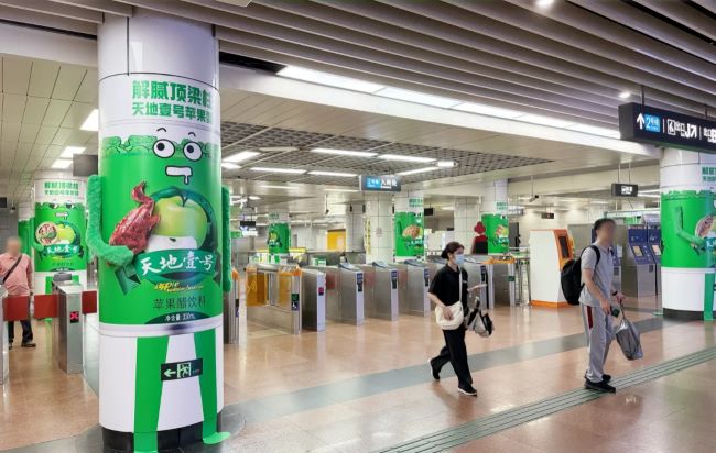 廣州地鐵公園前站站廳層22根包柱在站廳層分布于乘客行進(jìn)路徑交匯處,構(gòu)成分布式視覺矩陣,視線無法回避實(shí)現(xiàn)360度無死角展示,密集布局使乘客在站廳活動(dòng)時(shí)多次接觸廣告信息,單人次可實(shí)現(xiàn)3-5次品牌觸達(dá)。圓柱形結(jié)構(gòu)確保各方向客流均可捕獲廣告信息,結(jié)合創(chuàng)意包裝可形成強(qiáng)烈視覺記憶點(diǎn),通過立體裝飾延伸視覺維度,將廣告轉(zhuǎn)化為互動(dòng)打卡點(diǎn),激發(fā)社交媒體二次傳播,顯著提升廣告附加價(jià)值。級(jí)客流量,可實(shí)現(xiàn)理想的千次曝光成本。