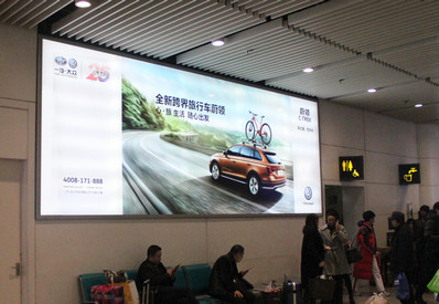 媒體位置/形式:二層出發(fā)大廳辦票島正上方室內(nèi)燈箱 媒體編號(hào):HH-8 媒體規(guī)格:3.5m*20m*2塊=140㎡,3.5m*1.8m=6.3㎡ 媒體數(shù)量:3塊 媒體報(bào)價(jià):420萬(wàn)元/年/3塊/組 |