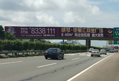 媒體位置:廣珠西線高速坦洲向南屏方向跨線天橋大牌 媒體規(guī)格:長(zhǎng)51.3*4.2m(廣珠西線高速出珠海方向)、長(zhǎng)50.5*4.2m(廣珠西線高速入珠海方向) 媒體報(bào)價(jià):33萬(wàn)元/個(gè)月(雙面) |