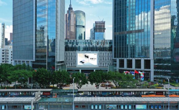 媒體位置:廣州大道中毗鄰五羊新城及珠江新城CBD 媒體尺寸:22.36m寬×14.04m高=314㎡ 客流人次:200萬/日 輪播時間:8:00-22:00 屏幕分辨率:1350*840px 媒體報價:18.8萬元/周(15秒/60次/天)