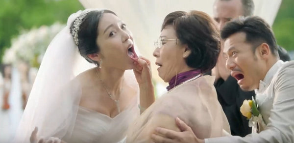 2. 這條廣告中,婚禮新人正要宣誓時(shí),婆婆突然沖上臺(tái),在眾人目瞪狗呆之下對新娘捏鼻子、扯耳朵、查牙口、揉下巴,然后對兒子比出OK的手勢。視頻將新郎比作購車者、新娘比作二手車、婆婆比作奧迪官方。廣告語:重要決定必須謹(jǐn)慎,奧迪二手車在線4S店,官方認(rèn)證才放心。