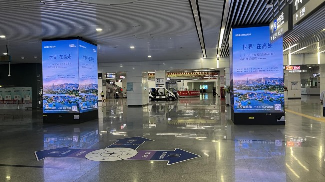 深圳福田高鐵站進出站地鐵換乘大廳包柱LED大屏廣告