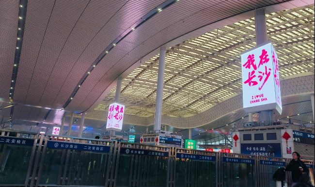 長(zhǎng)沙南站候車(chē)大廳中央三面立柱LED大屏廣告