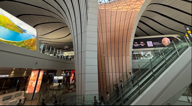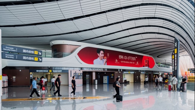 北京大興機(jī)場國內(nèi)國際出發(fā)值機(jī)大廳LED大屏廣告