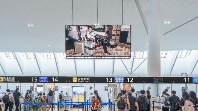 - 廣州機(jī)場(chǎng)出發(fā)安檢大廳高空墻面廣告牌投放,廣州白云機(jī)場(chǎng)廣告2025-09-22