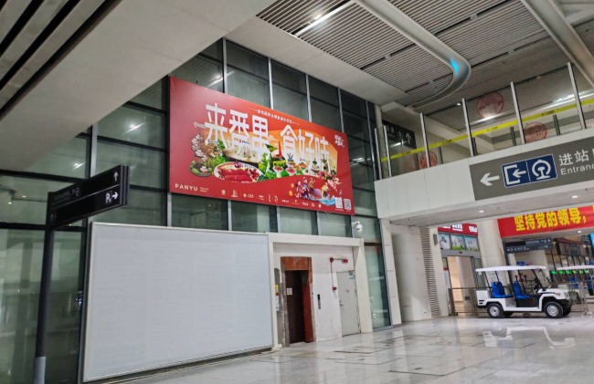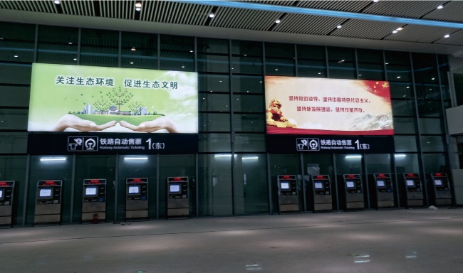媒體位置:進(jìn)站區(qū)售票機(jī)上方站棚墻面
