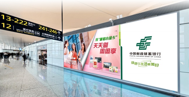寧波機(jī)場T2國內(nèi)出發(fā)通廊候機(jī)區(qū)墻面燈箱廣告最大規(guī)格橫長近9米,5塊組合形成 梯次視覺矩陣,在通廊縱深空間中構(gòu)建連續(xù)品牌印象。燈箱廣告3-4米高度設(shè)計(jì)匹配旅客站立/坐臥視線,平視無死角觸達(dá),規(guī)避人流遮擋。超大畫面在通廊低矮空間中更具壓迫式存在感。T2航站口候機(jī)廳通廊空間規(guī)避外部信息干擾,旅客視線自然落于墻面及登機(jī)信息屏,燈箱憑借登機(jī)口座椅旁區(qū)位綁定優(yōu)勢,嵌入核心視覺動線,形成被動曝光強(qiáng)場景。