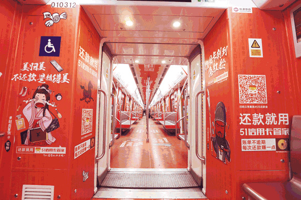 12月18日,借著口碑爆款國(guó)劇《軍師聯(lián)盟之虎嘯龍吟》的熱播,以及主演吳秀波的光環(huán),51信用卡在杭州地鐵1號(hào)線,承包了一列三國(guó)主題的“軍師聯(lián)萌”的地鐵。