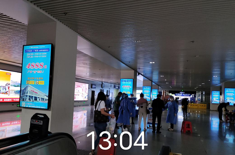 郴州西站候車大廳檢票口三面翻大牌廣告