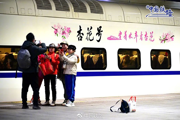 烏魯木齊局集團公司每天在烏魯木齊至吐魯番兩地往返開行4趟“杏花號”動車組,助力當?shù)芈糜萎a(chǎn)業(yè)發(fā)展,方便游客前往吐魯番高昌區(qū)、托克遜縣、鄯善縣等賞花點位旅游。