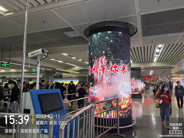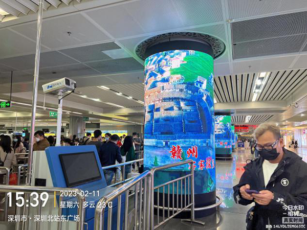 深圳北站換乘區(qū)包柱LED廣告價格,文旅政府深圳北高鐵站廣告案例