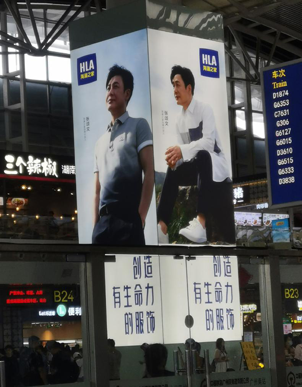 隨著電視劇狂飆的熱播,張頌文老師憑借演技不僅引發(fā)網(wǎng)絡(luò)上的熱議,線下也能經(jīng)常看到他的代言廣告。全仔不得不感慨:海瀾之家,您不僅懂男人的衣櫥,您也懂廣告的。廣州南站出發(fā)層候車大廳巨型包柱燈箱廣告讓代言人的氣質(zhì)和品牌理念完美傳達給了消費者。簡潔而不簡單的巨幅畫面使品牌形象深入人心。機場和高鐵站是商旅人士全年經(jīng)常多次打卡的交通樞紐,廣州南站廣告位也常年是男裝品牌廣告投放的黃金位置。