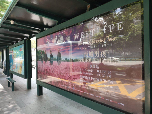 西城男孩四海逐夢巡回演唱會9月17日晚深圳灣春繭開唱,深圳候車亭廣告夢幻的粉絲天空麥田背景加幾位主唱的海報一下把全仔拉回學(xué)生時代,一首膾炙人口的‘My Love’響徹大街小巷。這次巡演的深圳候車亭廣告同樣鋪滿深圳的大街小巷,不管是深南大道還是濱海大道,南海大道還是北環(huán)大道,歌迷紛紛自發(fā)與深圳候車亭廣告合影打卡留念。