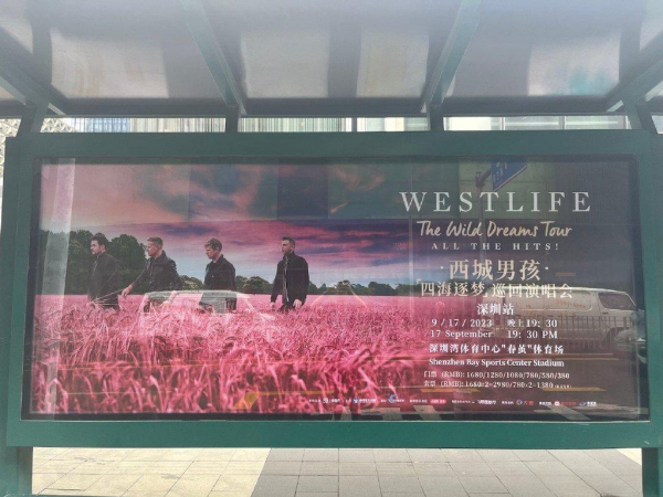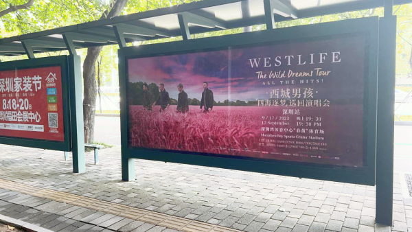 深圳公交候車亭廣告2周起做,支持短期亦可長期發(fā)布廣告,是演唱會、影視劇等文化活動宣傳的不二之選。以粉色麥田為背景的WESTLIFE西城男孩深圳巡回演唱會宣傳海報上刊深圳大街小巷的公交候車亭廣告。第一戶外小編通過此次演唱會廣告案例帶大家了解下深圳候車亭燈箱廣告。