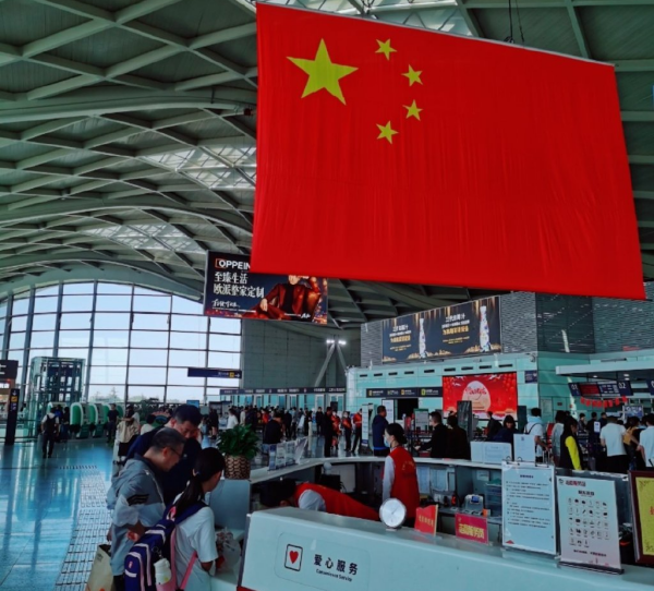 2023年中秋國慶假期揚(yáng)泰機(jī)場(chǎng)旅客吞吐量為8.23萬人次,對(duì)比2022年同期增加一倍。