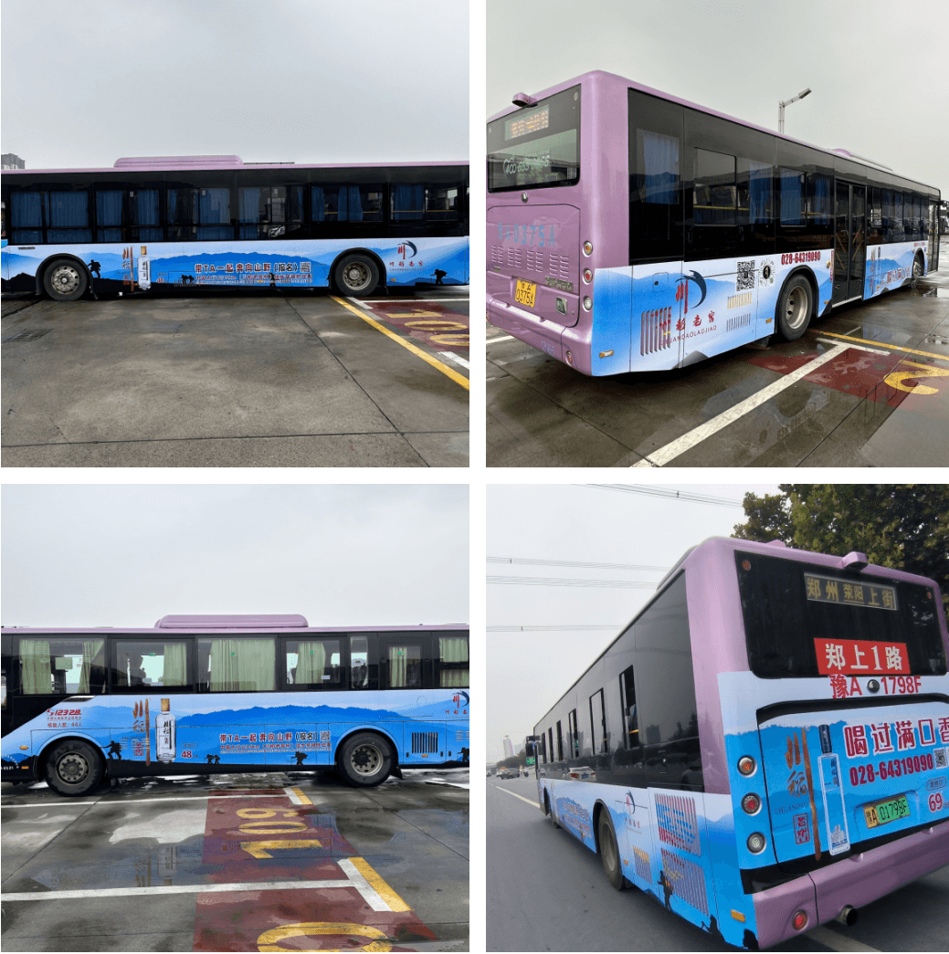今天第一戶外小編給大家?guī)淼陌拙破放平?jīng)典鄭州公交車身廣告案例照片。近百輛印刷著川稻老窖廣告的公交車365天風(fēng)雨無阻、全年無休的行駛展示在各個(gè)廣場(chǎng)、車站、購物街、學(xué)校、政府機(jī)關(guān)、商場(chǎng)、生活區(qū)、工業(yè)區(qū),覆蓋全市車流、人流密集的街區(qū)。真正實(shí)現(xiàn)“覆蓋廣·多維度·高頻次"的品牌傳播。