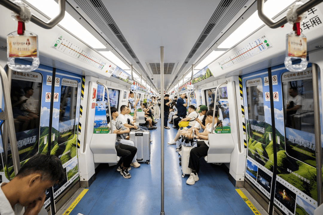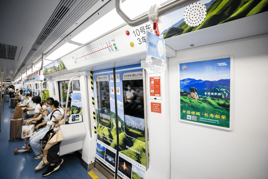 福州地鐵列車廣告駛向柘榮草場,藍天碧草絕美地鐵內(nèi)包車廣告價格