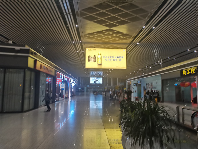 媒體位置:安檢后通道上方旅客前進(jìn)方向正迎面狗不理商鋪旁