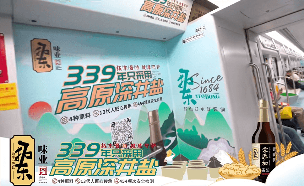 昆明地鐵列車廣告價(jià)格收費(fèi)多少錢?昆明地鐵內(nèi)包車廣告醬油案例
