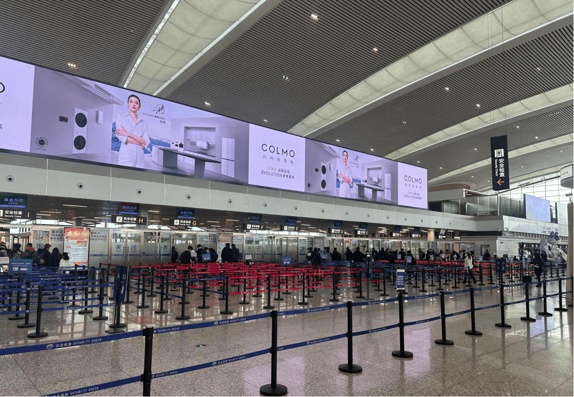 無錫機(jī)場國內(nèi)出發(fā)安檢上方LED大屏廣告