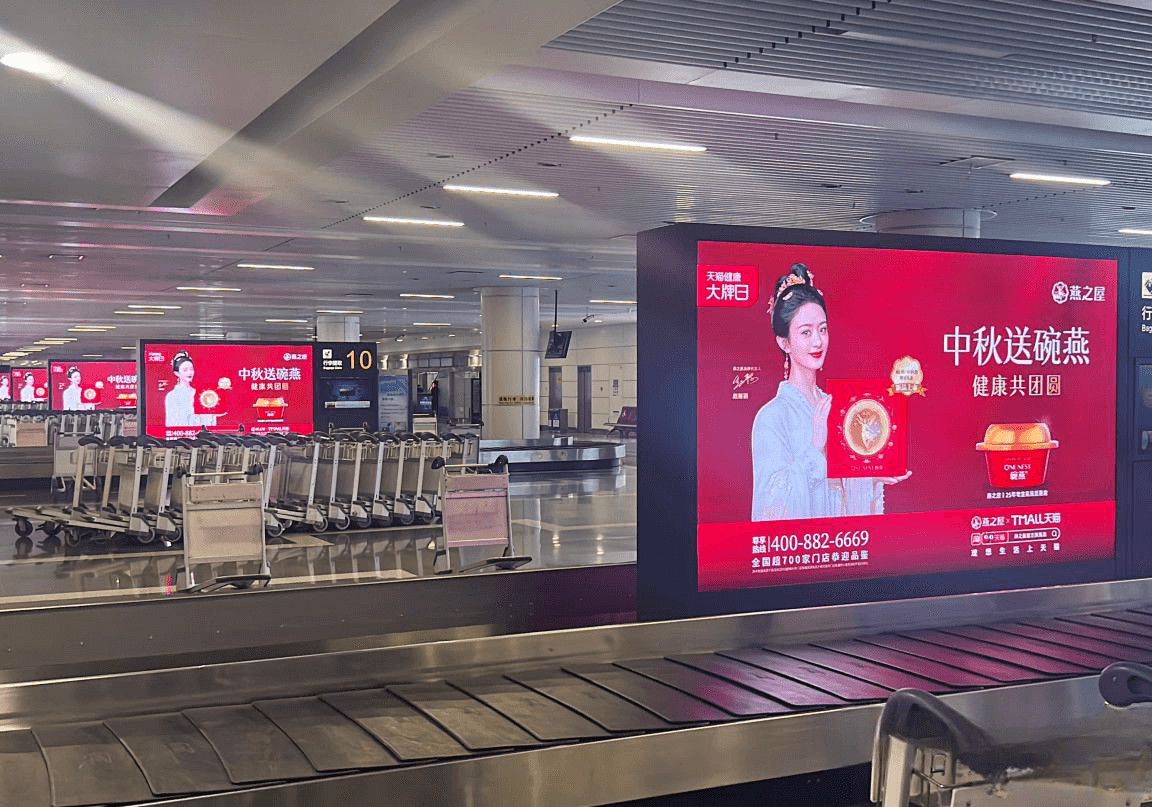 媒體優(yōu)勢:位于到達(dá)行李大廳覆蓋100%國內(nèi)到達(dá)旅客,周邊環(huán)境寬闊明亮,畫面距離排隊取行李旅客舉例較近,廣告效果好,12塊LED大屏聯(lián)排發(fā)布效果震撼。取行李時廣告受眾多把注意力集中在轉(zhuǎn)盤和周圍環(huán)境中而非手機(jī),適合品牌傳播。