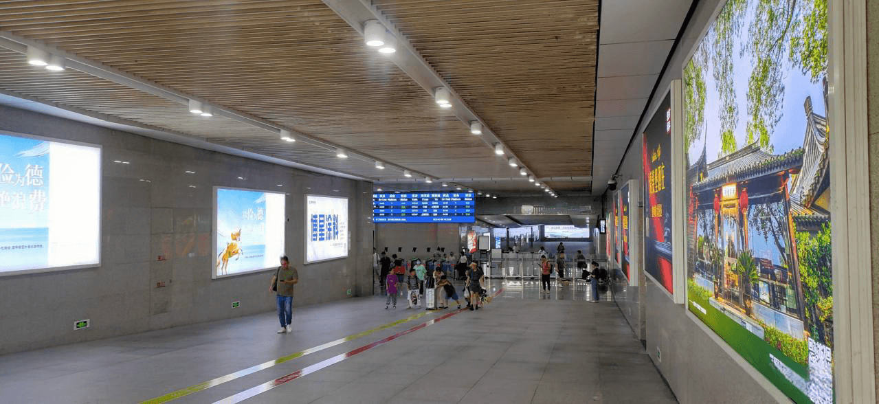 媒體優(yōu)勢(shì):出站通道燈箱廣告24小時(shí)不間斷展示廣告畫(huà)面,可觸達(dá)全部出站密集客流,是嘉興南站到達(dá)第一眼媒體。