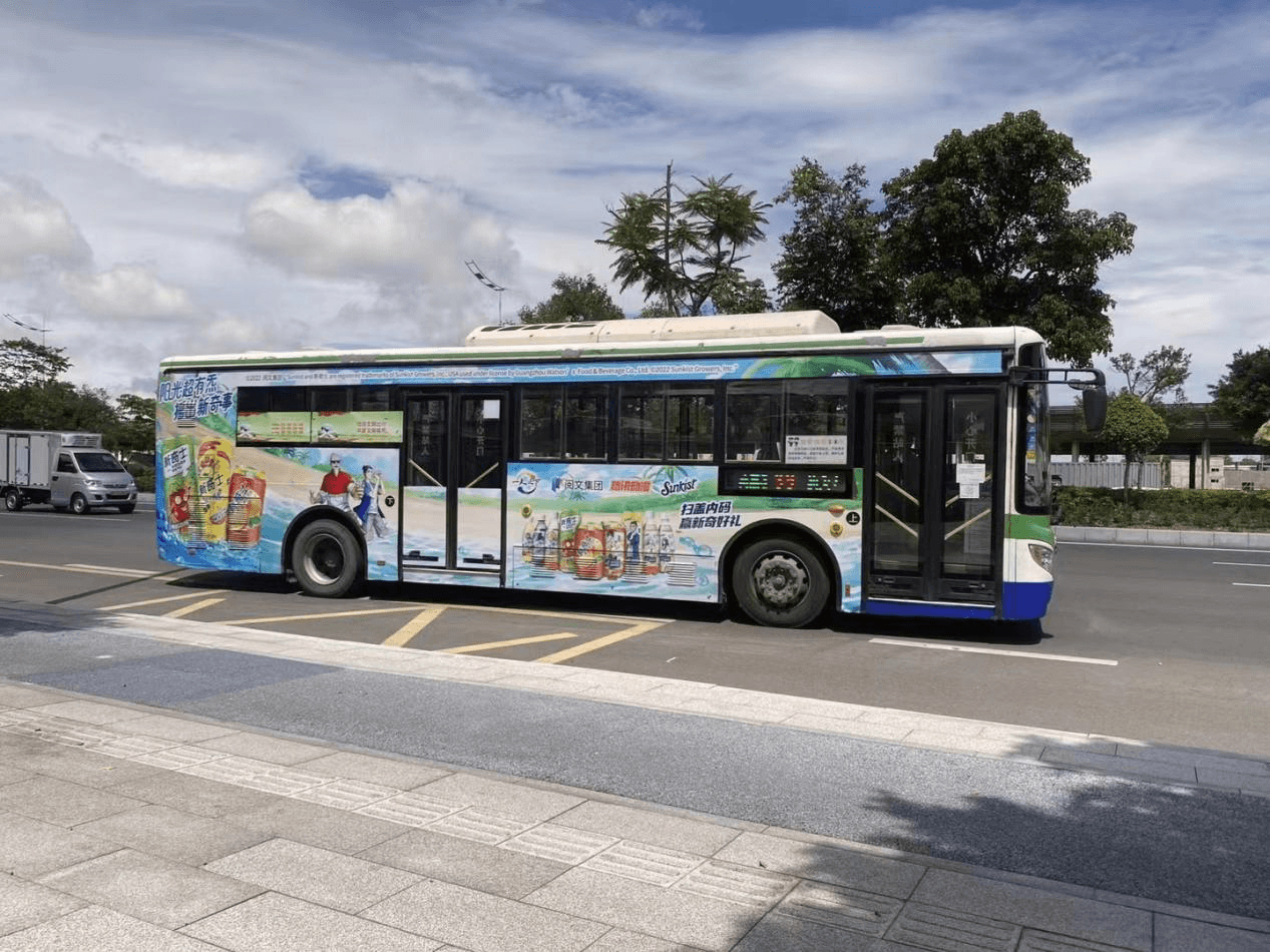汕頭公交廣告價(jià)格多少錢?汕頭巴士車身廣告外車身貼紙線路案例圖