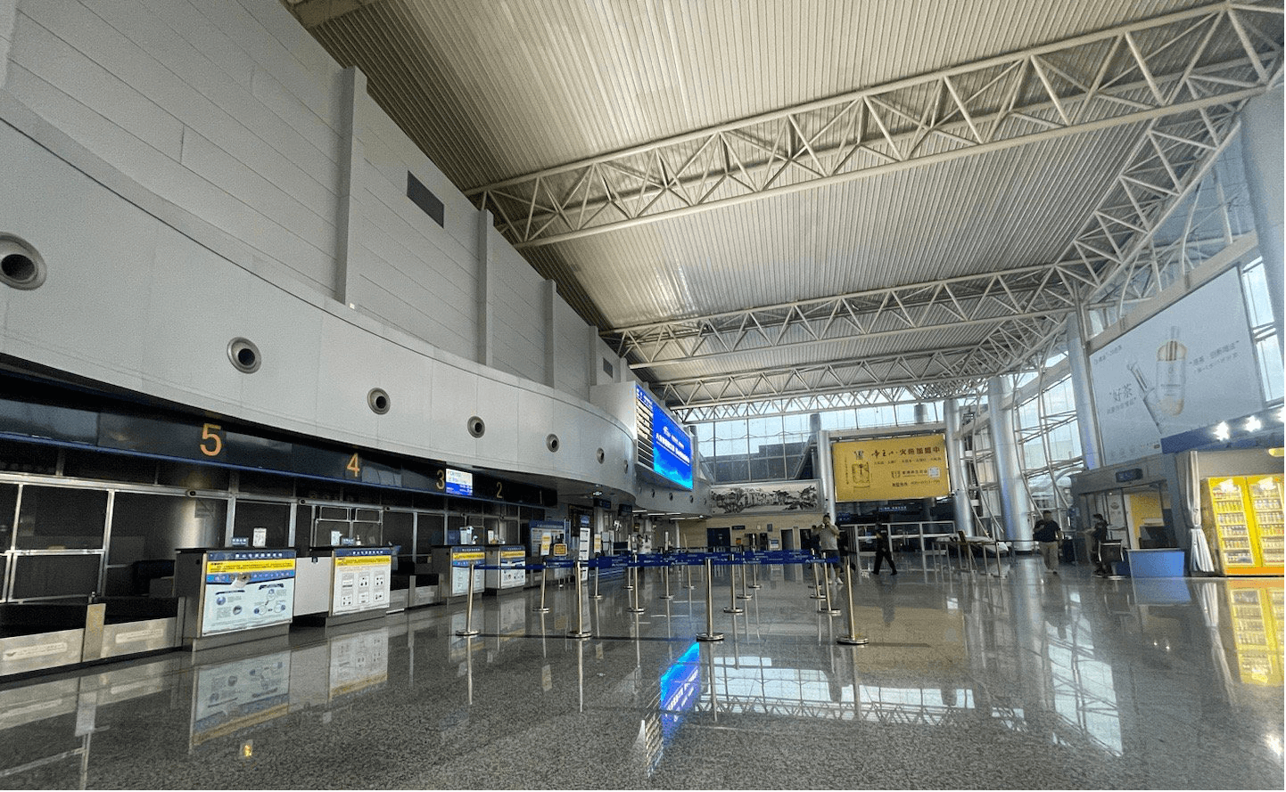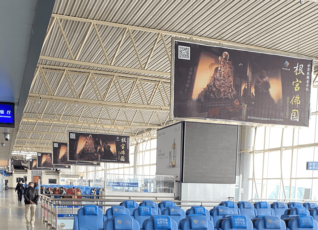 黃山機(jī)場(chǎng)二層候機(jī)大廳懸掛看板吊旗廣告