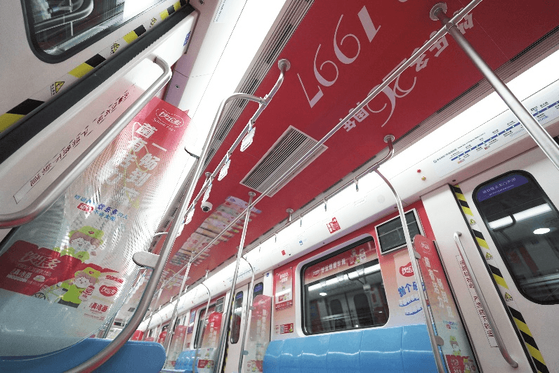 青島地鐵列車廣告案例圖,青島地鐵廣告內(nèi)包車價格收費多少錢?