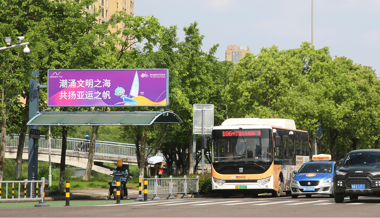 寧波十字路口遮陽棚大牌燈箱廣告位于路肩兩側(cè)自行車電單車行車道上方,為等候紅燈的行人遮陽擋雨,是一項人性化的市政設(shè)施。寧波遮陽棚大牌廣告位于遮陽棚上方,廣告畫面24小時雙面展示,夜間亮燈,廣告效果突出,貼近市民生活。廣告受眾來自路口排隊車流乘車人駕駛員,以及人流。若選擇點位周邊高樓林立,廣告畫面亦可覆蓋周邊居住辦公的市民。