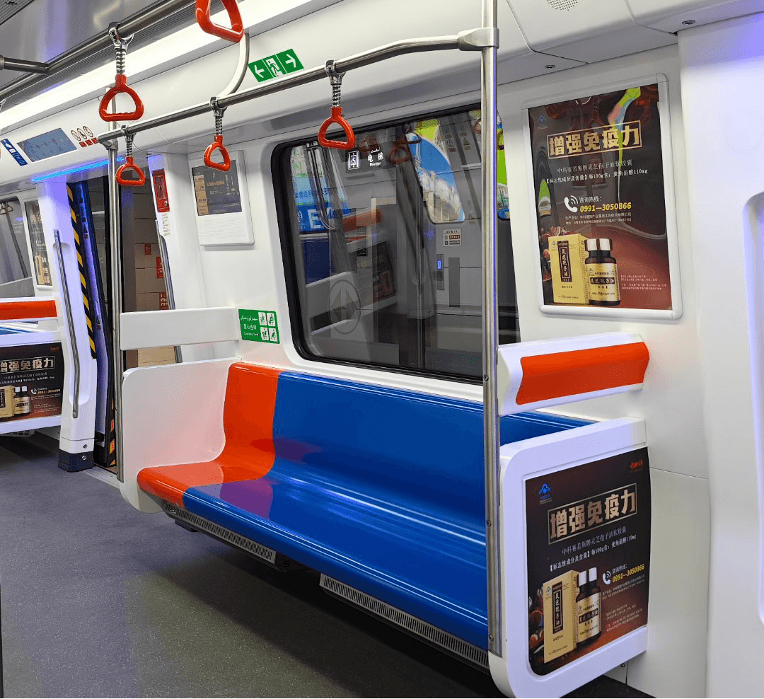 烏魯木齊地鐵列車廣告價(jià)格收費(fèi)?烏魯木齊地鐵內(nèi)包車廣告案例圖