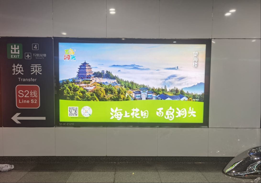 “海上花園 百島洞頭”精選洞頭望海樓、鹿西鳥島、韭菜岙沙灘、海霞青年?duì)I等特色文旅資源及業(yè)態(tài)的照片作為溫州地鐵廣告海報(bào),在溫州S2輕軌沿線機(jī)場站、翁垟站、柳市站等9個(gè)重要站點(diǎn)向八方游客展示百島洞頭!