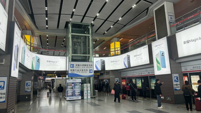 鄭州地鐵1號(hào)線鄭州東站站臺(tái)環(huán)繞品牌區(qū)廣告