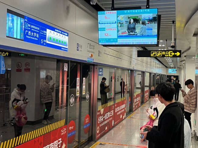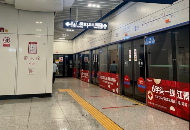 南寧地鐵廣西大學站站臺屏蔽門貼廣告