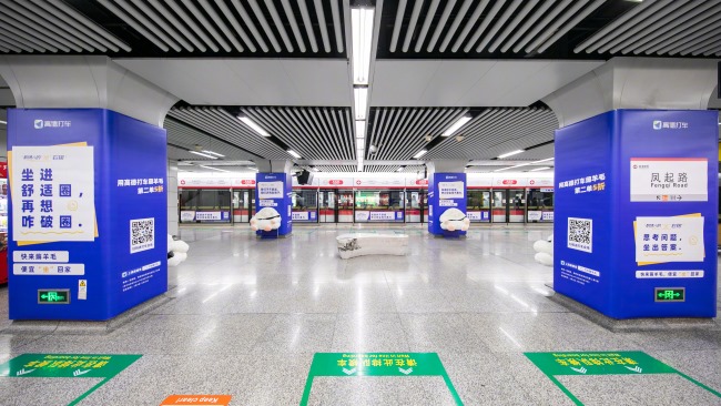 地鐵站臺層候車區(qū)域的可愛的小羊座椅吸引過往乘車乘客駐足觀看,并拍照分享至社交媒體,形成二次傳播。長度超120米的站臺屏蔽門貼廣告實現(xiàn)候車客流全覆蓋,廣告曝光時間長。